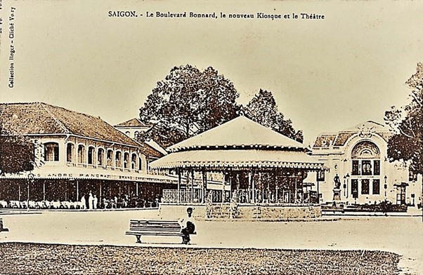 Bồn kèn – nơi biểu diễn nhạc công cộng ở giữa bùng binh Sài Gòn đầu thế kỷ XX (bưu ảnh xưa).