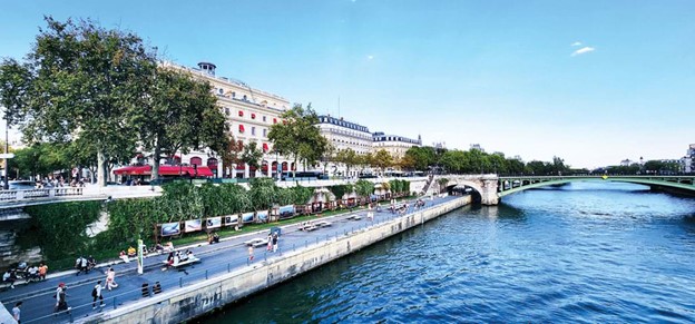 Triển lãm ảnh lộ thiên trên đường đi bộ và cảnh quan các cây cầu cổ dọc bờ sông Seine – Paris, khu vực gần Tòa Thị chính và nhà thờ Đức Bà – một gợi ý cho việc kiến tạo và sử dụng cảnh quan thiên nhiên – văn hóa – lịch sử dọc bến Bạch Đằng và bờ Thủ Thiêm đối diện (ảnh chụp tháng 9.2023).