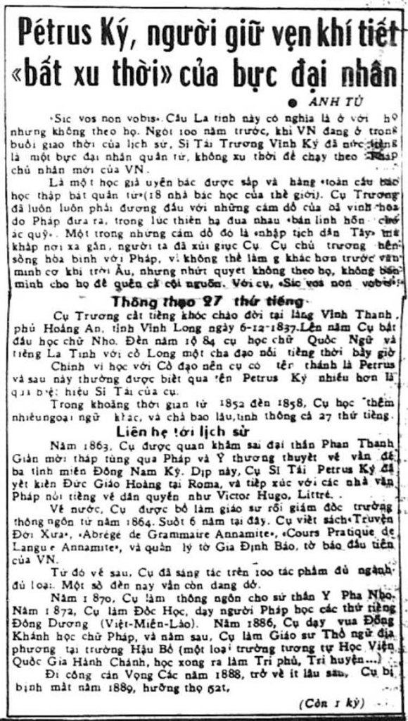 Petrus Ký, người giữ vẹn khí tiết “bất xu thời” của bực đại nhân.