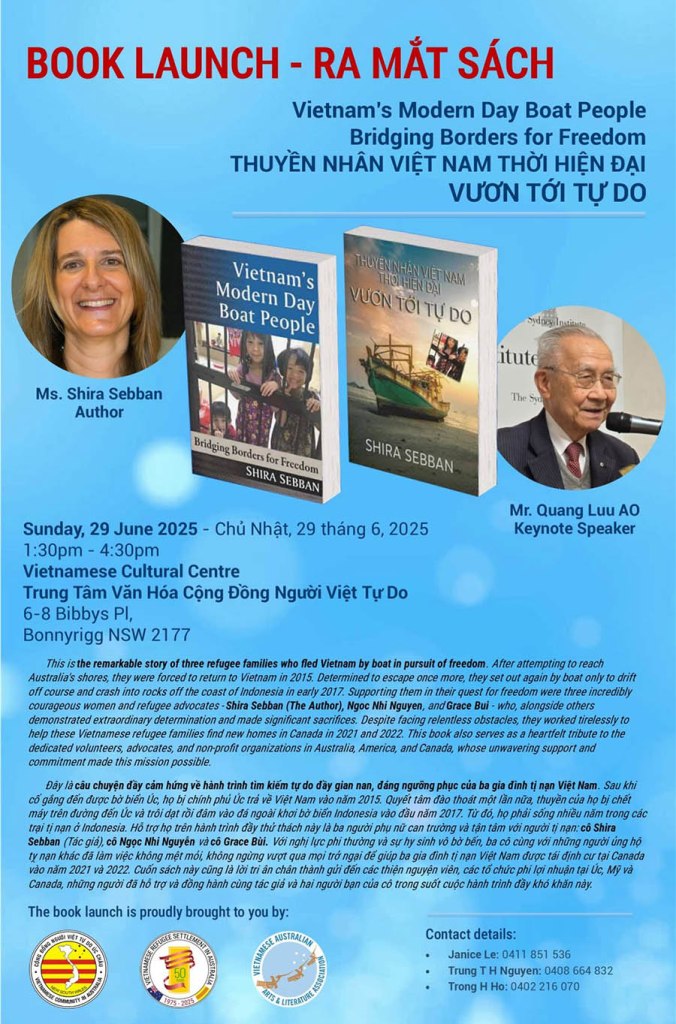 Thư mời tham dự buổi ra mắt sách: Vietnam’s Modern Day Boat People Bridging Borders for Freedom – Thuyền nhân Việt Nam thời hiện đại vươn tới tự do – Tác giả: Ms Shira Sebban