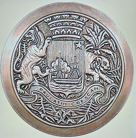 Dưới chân tấm khiên và hai con cọp là một dải lụa, ghi dòng chữ bằng tiếng Latin: PAULATIM CRESCAM, nghĩa là TỪ TỪ TÔI SẼ LỚN.
