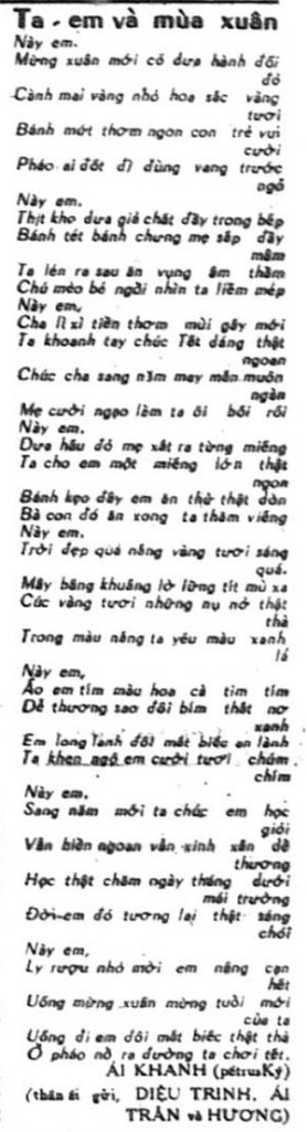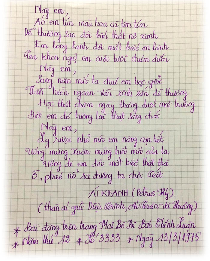 (Thân ái gởi DIỆU TỊNH, ÁI TRÂN và HƯƠNG)