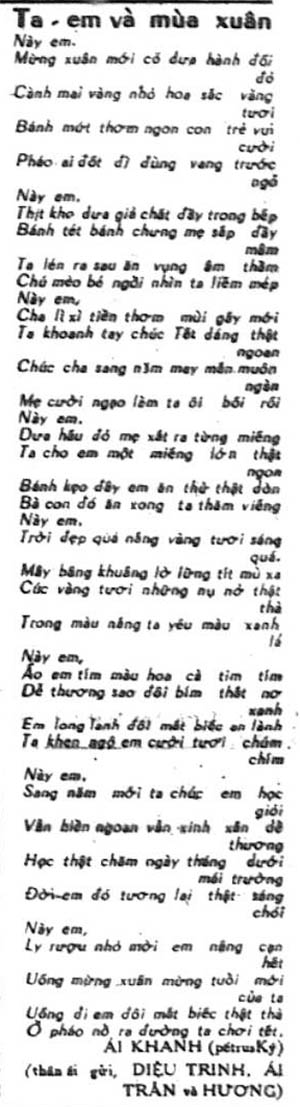 (Thân ái gởi DIỆU TỊNH, ÁI TRÂN và HƯƠNG)