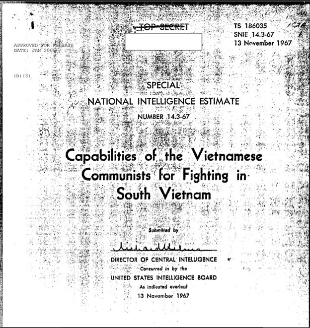 Cuộc Tổng Tấn Công Tết Mậu Thân (từ cuối tháng 1-1968) của phe Cộng Sản trên toàn lãnh thổ của Việt Nam Cộng Hòa, mà báo chí sách vở Hoa Kỳ thường gọi là Tet Offensive, đã được đánh giá như là một thất bại lớn về tình báo của Hoa Kỳ trong Chiến Tranh Việt Nam. Việc đánh giá như vậy có hoàn toàn đúng hay không ? Bài viết này tìm hiểu những tranh luận chung quanh tài liệu SNIE 14.3-67 của CIA nhằm cố gắng trả lời câu hỏi đó.