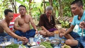 “Nói thiệt chú chớ dế, ve, nhộng sâu, đuông dừa, bò cạp.. tui đều ăn qua rồi. Có sao đâu, chiên vàng lên với bơ tỏi tiêu là bắt mắt và bắt rượu. Nói thiệt chú chớ có vài ba lần bị chóng mặt sơ sơ, cồn cào trong bụng chút chút, cũng có cảm thấy bủn rủn chừng độ nửa giờ nhưng chỉ nằm ngủ một giấc là hết.” Năm Đơ gật gù cười mím chi coi bộ khoái trá tiếp: “Tụi nó ói mửa tùm lum, ngã rạp hết phân nửa, may mà chưa có thằng nào bữa đó lên nóc tủ ngồi ngắm gà khỏa thân hưởng khói nhang.”
