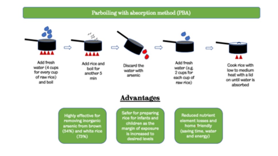 Phần lớn arsenic trong gạo có thể được loại bỏ bằng cách rửa kỹ hạt trước khi nấu. Đó là một thực tiễn đã được quan sát được từ cách nấu cơm và “vo gạo” trong nước nhiều lần.