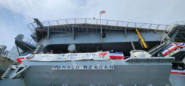Nhóm tàu hải quân Mỹ gồm tàu sân bay USS Ronald Reagan (CVN 76) cùng hai tàu tuần dương hộ tống là tàu USS Antietam (CG 54) và tàu USS Robert Smalls (CG 62) đã cập cảng Tiên Sa, TP. Đà Nẵng, vào ngày 25.6 và sẽ ở đây đến ngày 30.6.