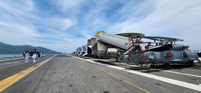 Sĩ quan Jessee Duarte của tàu ân cần hướng dẫn khách tham quan boong tàu rộng lớn, nơi các máy bay hải quân cất và hạ cánh. Sau đấy, khách được mời đi thăm khoang cất giữ máy bay ở bên dưới. Ông Jessee đã thăm Việt Nam bốn lần, bao gồm Hà Nội, TP.HCM và Đà Nẵng.