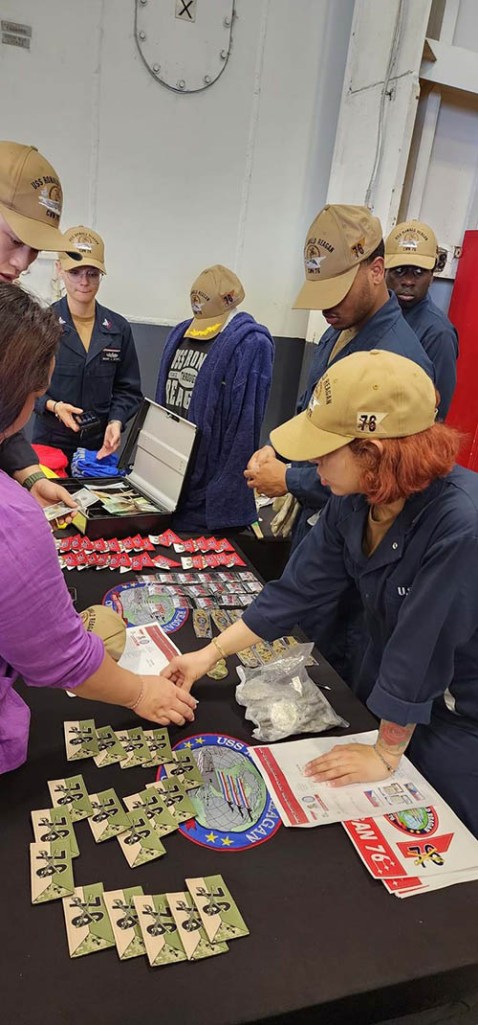 Bán hàng lưu niệm hàng không mẫu hạm cho khách