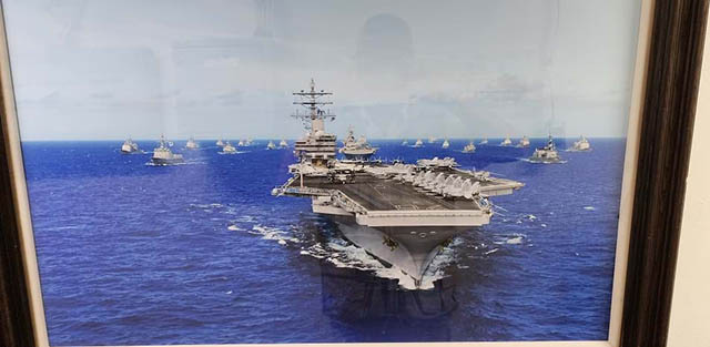 Hình chụp toàn cảnh Hàng không mẫu hạm Ronald Reagan treo tại tàu