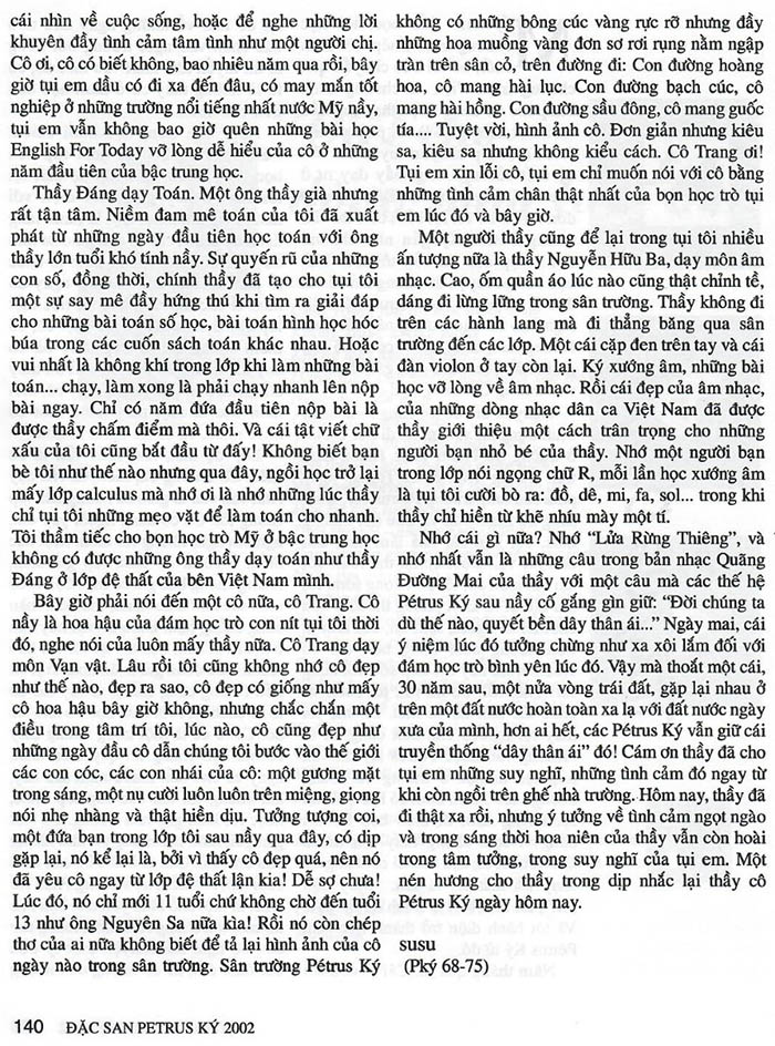 Thầy Cô ơi… Su Su (PKý 68-75) (Nguồn: Đặc san Petrus Ký 2002, hội Ái hữu CHS Petrus Ký Bắc California) Share this: Click to share on X (Opens in new window) X Click to share on Facebook (Opens in new window) Facebook Like Loading...