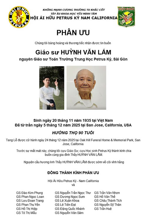 Tin đến nhẹ như một làn khói, nhưng khi chạm vào tim thì nặng như đá. Anh ngồi lặng rất lâu trước màn hình điện thoại, đọc đi đọc lại tờ phân ưu của Hội Ái Hữu Petrus Ký Nam California, thấy tên thầy: Giáo sư Huỳnh Văn Lắm, hiện ra rõ ràng mà xa xôi đến lạ.