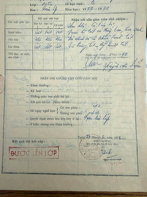 Tờ giấy đã ố vàng. Mực tím nhạt đi theo năm tháng. Nhưng chữ ký của thầy… vẫn còn đó.