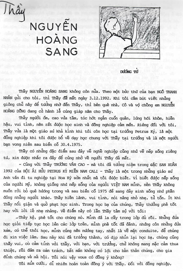 Thầy Nguyễn Hoàng Sang Dương Tử (Nguồn: Hội AH Trung học Trương Vĩnh Ký Paris, Nội san Thu – Đông tháng 11/94) Thầy Nguyễn Hoàng Sang Share this: Click to share on X (Opens in new window) X Click to share on Facebook (Opens in new window) Facebook Like Loading...