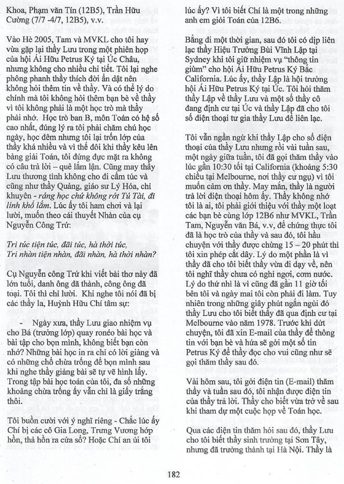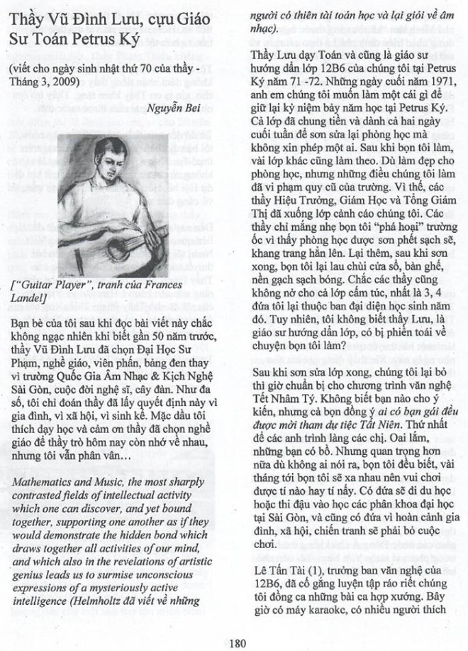 Thầy Vũ Đình Lưu, Cựu giáo sư Toán Petrus Ký Nguyễn Bei (Nguồn: đặc san Tạ Ơn Thầy – Nhớ Ơn Cô, thực hiện bởi một nhóm CHS Petrus Ký 65-72) Thầy Vũ Đình Lưu cùng một số học sinh lớp 12B5, nk 1973-1974 Share this: Click to share on X (Opens in new window) X Click to share on Facebook (Opens in new window) Facebook Like Loading...