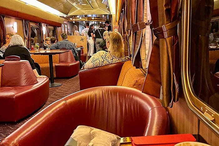 Ban đêm, ai rảnh thì ra Outback Explorer Lounge, làm ly vang đỏ, nhìn cửa kính thấy sa mạc chạy qua vùn vụt, trong khi ngồi trò chuyện với bạn đồng hành. Cái thú đó, giống như thời xe lửa còn là vua của các nẻo đường – đi không chỉ để tới nơi, mà để tận hưởng chuyến đi.