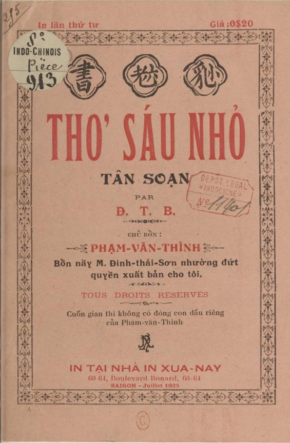 (viết theo bản của nhà xuất bản Phạm Văn Thình, Sàigòn 1920)
