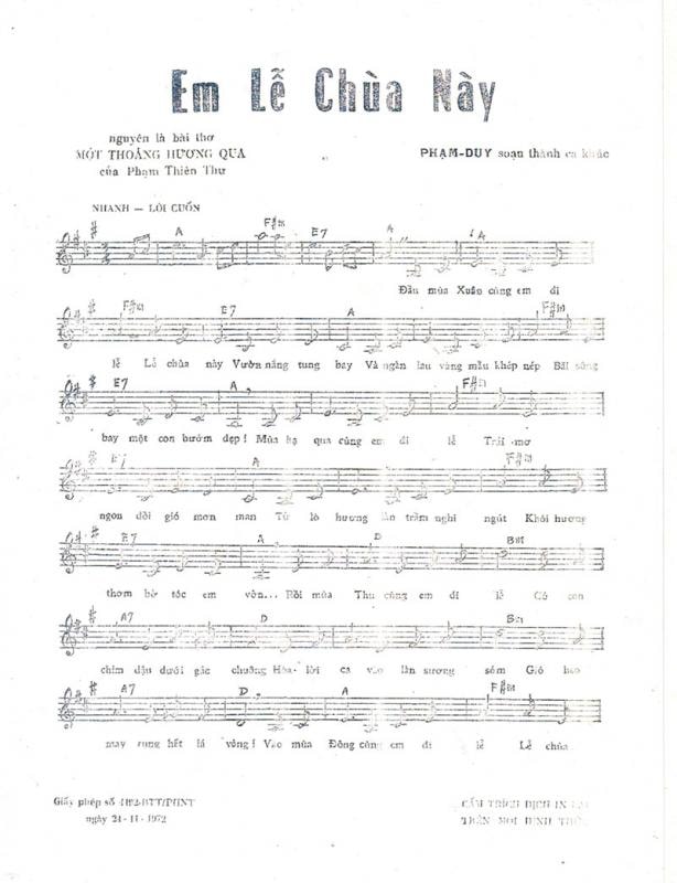 (**) Lời nhạc “Em lễ chùa này” của nhạc sĩ Phạm Duy