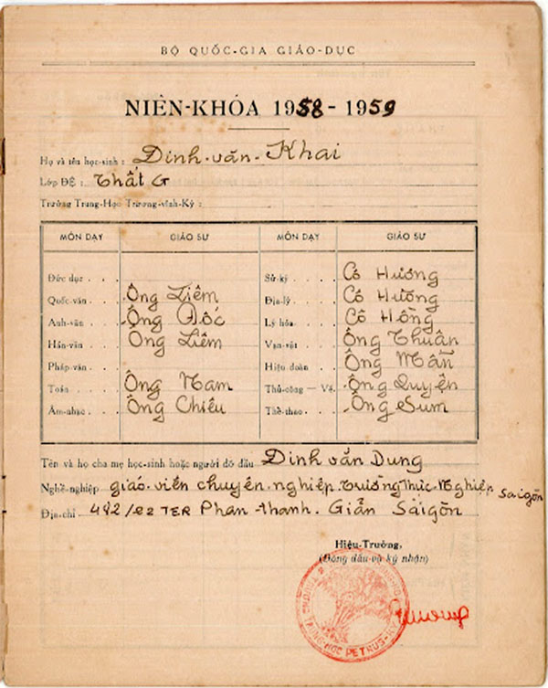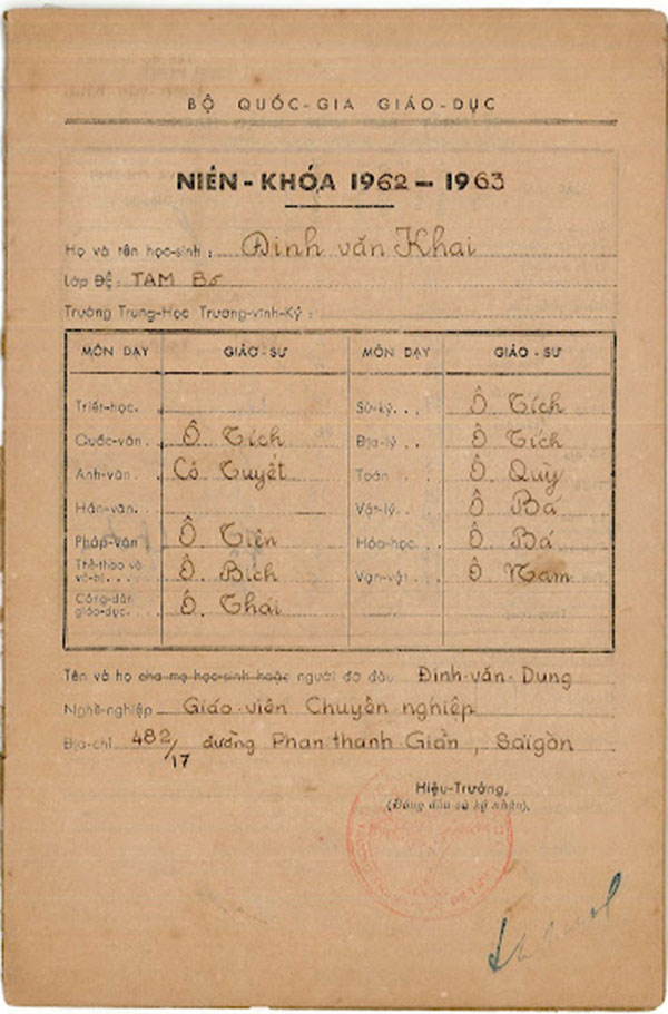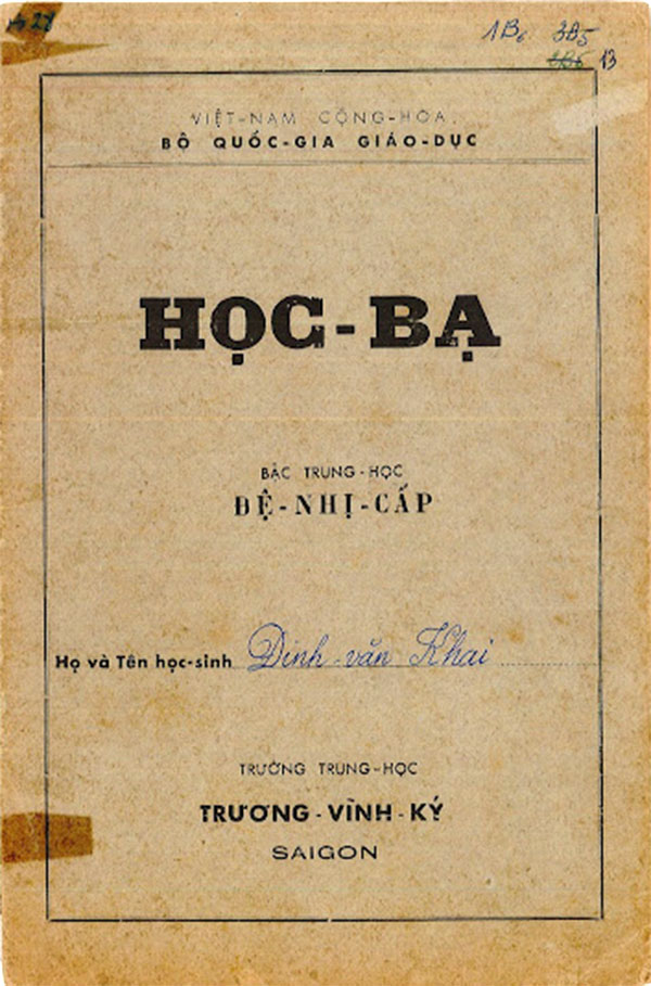 Thông Tín Bạ Trường Trung học Petrus Trương Vĩnh Ký niên khóa 1958 – 1965 của BS Đinh Văn Khai 1. CÁC TRANG CỦA THÔNG-TÍN-BẠ BẬC TRUNG-HỌC ĐỆ-NHẤT CẤP 2. CÁC TRANG CỦA HỌC-BẠ BẬC TRUNG-HỌC ĐỆ-NHỊ-CẤP Share this: Share on X (Opens in new window) X Share on Facebook (Opens in new window) Facebook Like Loading...