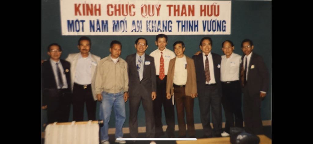Thầy Sum và Ban Chấp Hành Hội Ái Hữu cựu học sinh Petrus Ký trong ngày ra mắt 30-01-1994
