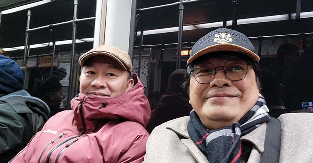 Tác giả và nhà báo Nguyễn Anh Tuấn (trái) cùng đi metro ở Boston – Mỹ (ảnh selfie 5.2024).