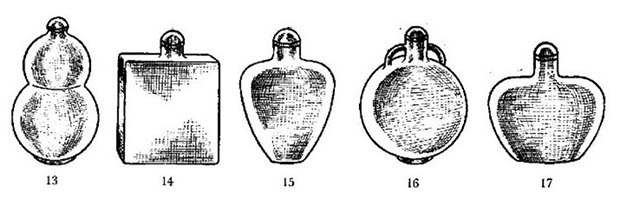 Cũng theo Trương Nghĩa Chú thì “đồ chứa thuốc ngửi gọi là bình 甁, cũng còn gọi là hạp 盒, đồ mang thuốc theo gọi là hồ 壺, lấy thuốc ra bỏ vào hồ gọi là lậu 漏, thuốc ở trong bình lấy ra mời khách gọi là điệp 疊, khuấy vào hồ để cho đều gọi là khiêu 挑 …”. Phần trên của bình ngửi có miệng nhỏ, trên miệng có nắp, cái thì làm bằng bảo thạch, cái thì làm bằng trân châu, cái thì làm bằng ngọc mắt mèo, đủ loại màu sắc.