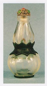 呂宋國所產煙草,本名淡巴菰,又名金絲薰,餘既詳之前卷。近京師又有製為鼻煙者,云可明目,尤有辟疫之功,以玻璃為瓶貯之。瓶之形象,種種不一,顏色亦具紅紫黃白黑綠諸色,白如水晶,紅如火齊,極可愛玩。以象齒為匙,就鼻嗅之,還納於瓶。皆內府製造,民間亦或仿而為之,終不及。[12]