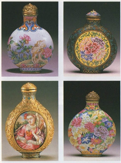 Theo Trương Vinh, số lượng bình ngửi pháp lam còn giữ trong Cố Cung Bác Vật Viện (Bắc Kinh & Đài Bắc) rất đa dạng, dùng pha lê làm lõi, ngoài hình tròn ra còn hình tám cạnh, hình trụ, hình vuông, hồ lô, đèn lồng … đủ loại. Hình vẽ trên đó cũng cực kỳ phong phú và tinh vi.