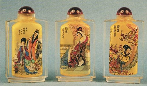 Các sứ thần khi đến triều cống thường được thưởng những chiếc bình nho nhỏ này. Loại bình quí giá nhất được tạc bằng ngọc (jade hay nephrite), thuỷ tinh, hay bằng sứ, chế tạo thành từng bộ 10 cái đựng trong hộp.