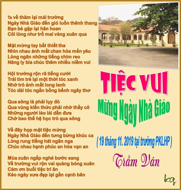 Tiệc Vui Mừng Ngày Nhà Giáo Trầm Vân Share this: Click to share on X (Opens in new window) X Click to share on Facebook (Opens in new window) Facebook Like Loading...