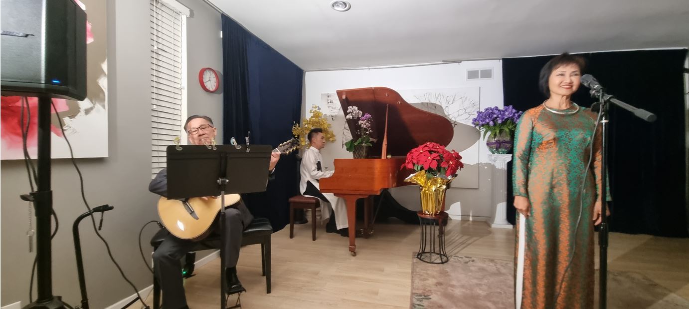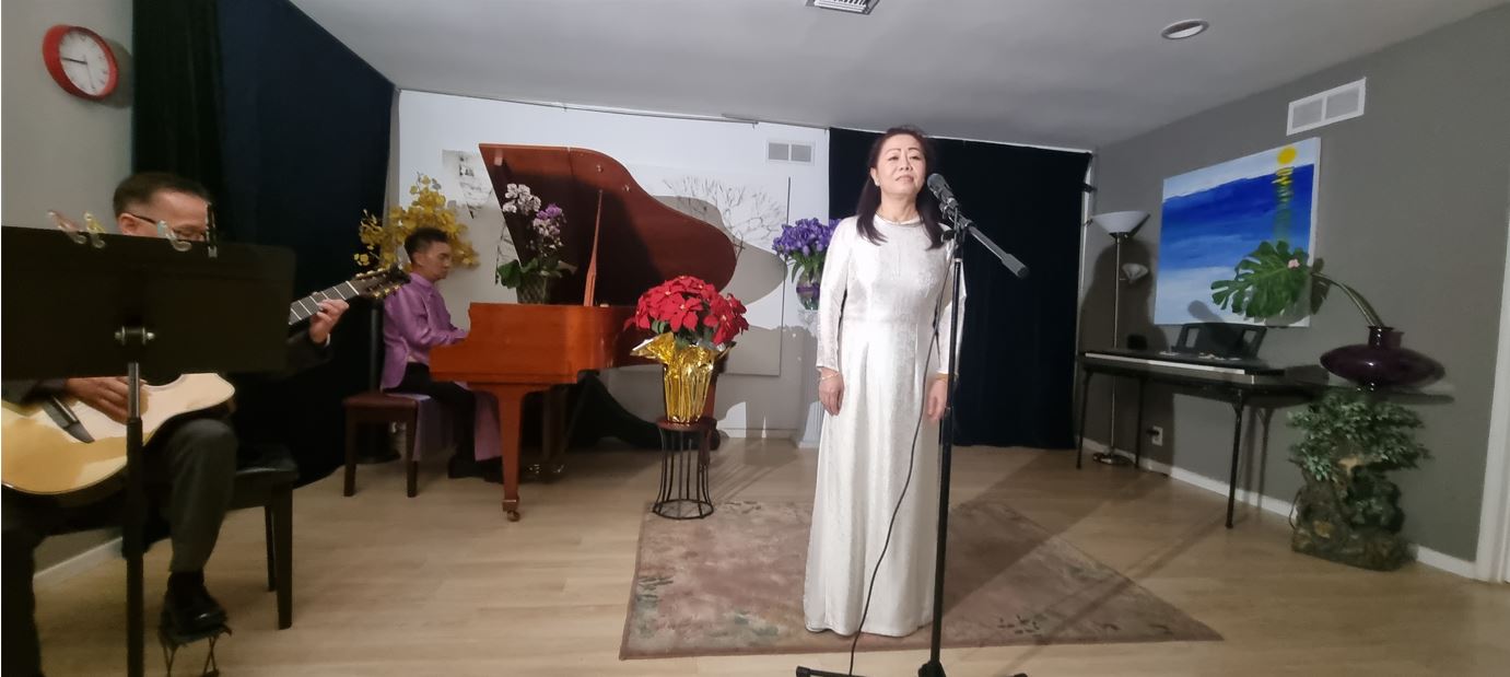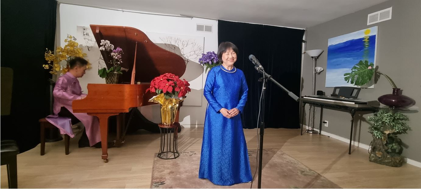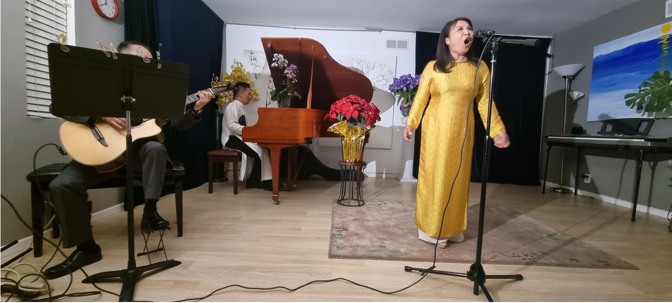 Chiều thứ sáu, bắt đầu của một cuối tuần, xe cộ vẫn hối hả và tấp nập đuổi nhau khắp các nẻo đường như sợ ngày tàn, đêm hết. Phòng dạy thanh nhạc thường nhật của em chiều nay được bày trí tao nhã, có tranh ảnh, có hoa tươi, chiếc đàn dương cầm sừng sững một góc và cây đàn guitar đang đợi chờ so dây, nắn phím. Một sân khấu “mini” đã sẵn sàng. Các anh chị học trò lớp thanh nhạc ăn mặc thanh lịch và đẹp rạng rỡ như trong ngày dạ hội.