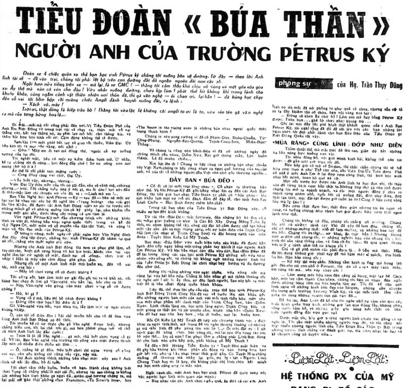 – Ghi lại nơi đây lời phê bình thật khách quan của một anh bạn Petrus Ký, tôi nghĩ rẳng đã đủ để nói lên với các bạn những lời ngợi khen tốt đẹp nhất dành cho ban Búa Đẽo của Tiểu Đoàn 51 Biệt Động Quân rồi vậy.