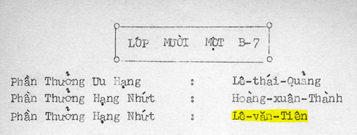 (Hình trích trong danh sách Học sinh xuất sắc lớp 11 (niên khóa 1970-1971)