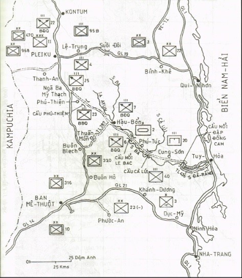 Về cách thức thực hiện lệnh này thì có thể tóm tắt trong một câu: không được chuẩn bị chu đáo, nếu không muốn nói là không có chuẩn bị gì cả. Ðây là một lỗi lầm lớn, rất lớn của Tướng Phú. Dù cho lệnh của Tổng Thống Thiệu là phải thực hiện cho nhanh, ông cũng không thể và không nên thực hiện quá nhanh như vậy. Chắc chắn ông phải biết rằng dân chúng trong Vùng II, đặc biệt là tại Pleiku, nơi đóng Bộ Tư Lệnh của Quân Ðoàn II, sẽ biết về việc triệt thoái này, và họ sẽ đi theo. Như vậy, ông không thể chỉ quan tâm đến khía cạnh quân lính và quân trang, quân dụng mà phải tính trước cả yếu tố dân chúng, mà là dân chúng bị hoảng hốt, kinh hoàng trước việc lui binh vĩ đại, vô tiền khoáng hậu này. Ngoài ra, một số việc làm của Tướng Phú trong thời gian này cũng cần phải được đánh giá. Việc thứ nhứt là việc ông đòi hỏi, gần như là một điều kiện để đánh đổi cho việc ông phải thi hành cái lệnh vô cùng khó khăn này, Tổng Thống Thiệu phải đồng ý thăng cấp Chuẩn Tướng cho Ðại Tá Phạm Duy Tất, Chỉ Huy Trưởng Biệt Ðộng Quân Vùng II. Tình hình quân sự lúc bấy giờ hoàn toàn không phù hợp cho việc thăng cấp trong quân đội; QLVNCH đang thua trận nặng nề chứ có phải đang chiến thắng oanh liệt gì đâu. Thứ hai, chỉ thăng cấp cho 1 vị đại tá là ông Tất mà thôi (với lý do gì cũng không thấy nói rõ, nhưng chắc chắn không phải do hành động gì phi thường tại mặt trận lúc bấy giờ) làm sao không tạo ra sự dèm pha (ông Tất là bạn thân của ông Phú từ nhiều năm) và bất mãn của các vị đại tá khác trong Bộ Tư Lệnh Quân Ðoàn, trong lúc đang cần sự đồng thuận và cộng tác tích cực giữa các sĩ quan cao cấp của Quân Ðoàn trong cuộc hành quân hết sức quan trọng này. Việc thứ ba là Tướng Phú gần như không có mặt trong cuộc triệt thoái này. Sáng ngày 15-3, ông và một số sĩ quan trong bộ tham mưu của ông bay về Nha Trang với lý do là để thiết lập bản doanh mới cho Bộ Tư Lệnh Quân Ðoàn. Việc chỉ huy tổng quát cuộc triệt thoái này được ông giao cho Tướng Tất.11 Ðây có thể là động cơ chính của Tướng Phú trong việc hết sức cố gắng xin Tổng Thống Thiệu thăng cấp Chuẩn Tướng cho bằng được cho Ðại Tá Tất. Theo kế hoạch, chỉ có Sư Ðoàn 6 Không Quân sẽ tự lo liệu để di chuyển toàn bộ lực lượng về căn cứ không quân Phan Rang, tất cả các lực lượng còn lại của Quân Ðoàn II sẽ di chung với nhau, mỗi ngày sẽ có một đoàn 200-250 xe sẽ rời Pleiku với binh sĩ và chiến cụ. Toàn bộ các lực lượng chủ lực của Quân Ðoàn II hiện diện trong vùng Pleiku-Kontum lúc đó gồm: