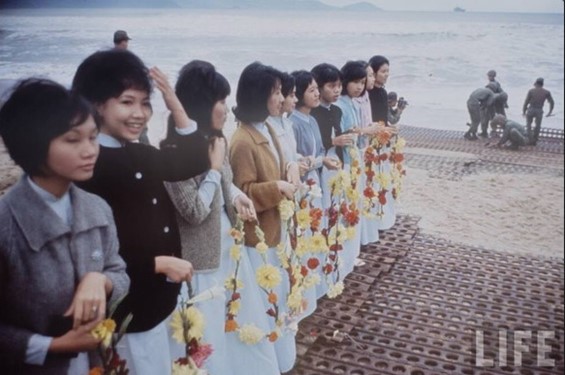 Hình Các Thiếu Nữ Đà Nẵng Đón Tiếp TQLC Mỹ Tại Bải Biển Mỹ Khê
