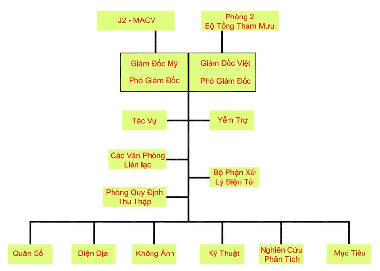 - Trung tâm khai thác tài liệu hỗn hợp: tập trung và khai thác tất cả các loại tài liệu (kể cả sách báo, phim ảnh chính thức của Bắc Việt) thu được của địch, và báo cáo cho Phòng 2 TTM và J2-MACV