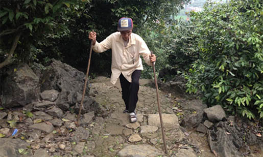 Chống gậy lên thăm cụ lão bà,