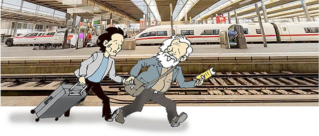Chính lúc ấy, một ông già tiến lại gần. Ông nói với tôi điều gì đó bằng tiếng Đức, giọng khàn khàn nhưng ánh mắt hiền từ. Tôi chẳng hiểu ông nói gì, chỉ đoán ông đang hỏi tôi có ổn không. Run rẩy, tôi đưa ông xem tấm vé tàu. Ông nhìn kỹ, rồi dùng bàn tay gân guốc chỉ về một hướng, vừa nói vừa ra dấu. Thấy tôi vẫn còn hoang mang, ông nắm tay tôi, dẫn tôi đến đúng sân ga cần thiết, rồi dừng lại, chỉ tay vào bảng hiệu và mỉm cười lần nữa.