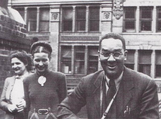 Richard Wright và vợ, Ellen, với Simone de Beauvoir (giữa) trong lần đầu bà đến Thành phố New York, năm 1947. Nguồn: http://thisrecording.com