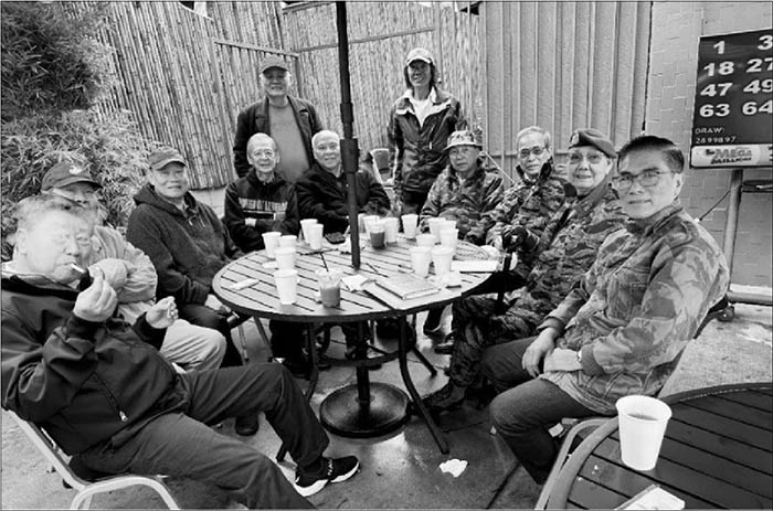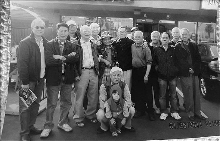 25/1/201 Trái -> phải: Tạ Hạnh, Đình Bảo*, Văn Châm, Văn Nhơn, Trung Tá Đặng Bá Đạt, Văn Bình*, Lạng Sơn*, (?), Chủ tiệm Lan Hương Hữu Hào*, Đình Thọ, Văn Đuông, Võ Thạch, Trọng Cảo* Người ngồi là Kiều Công Cự ôm con (hay cháu?) (* “Những người muôn năm cũ”)