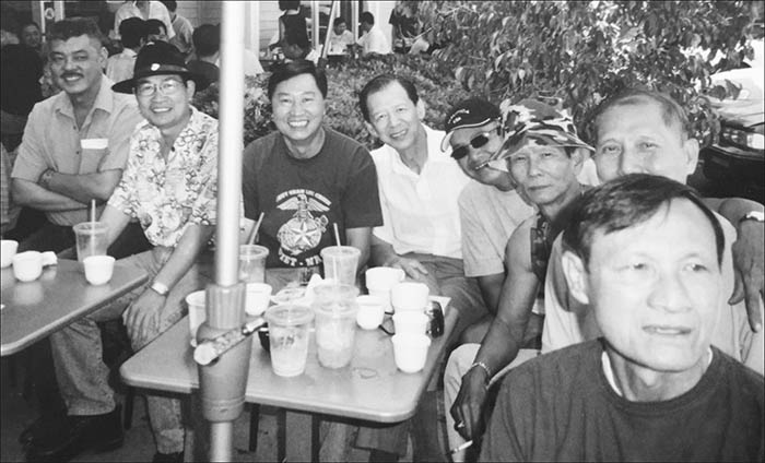 Tháng 6/2000 – Trái -> phải: Nguyễn Minh Đức, Phan Bửu Ngọc, Trương Minh Ngọc, Đinh Hoàng Vân, Đại Tá Phạm Văn Chung*, Quách Ngọc Lâm, Trung Tá Thùy, Lê Văn Châm, Đại Tá Nguyễn Năng Bảo* Trung Tá Vượng*, Trung Tá Phạm Nhã, Định Nguyên*, Trần Vệ, chị Định Nguyên, Lê Đình Bảo*, Tô Văn Cấp, Võ Thanh Sang, Nguyễn Phục Hưng, Phan Văn Đuông, Đỗ Trung Giao, Trần Văn Thuận, Châu Tâm*. (* “Những người muôn năm cũ”)