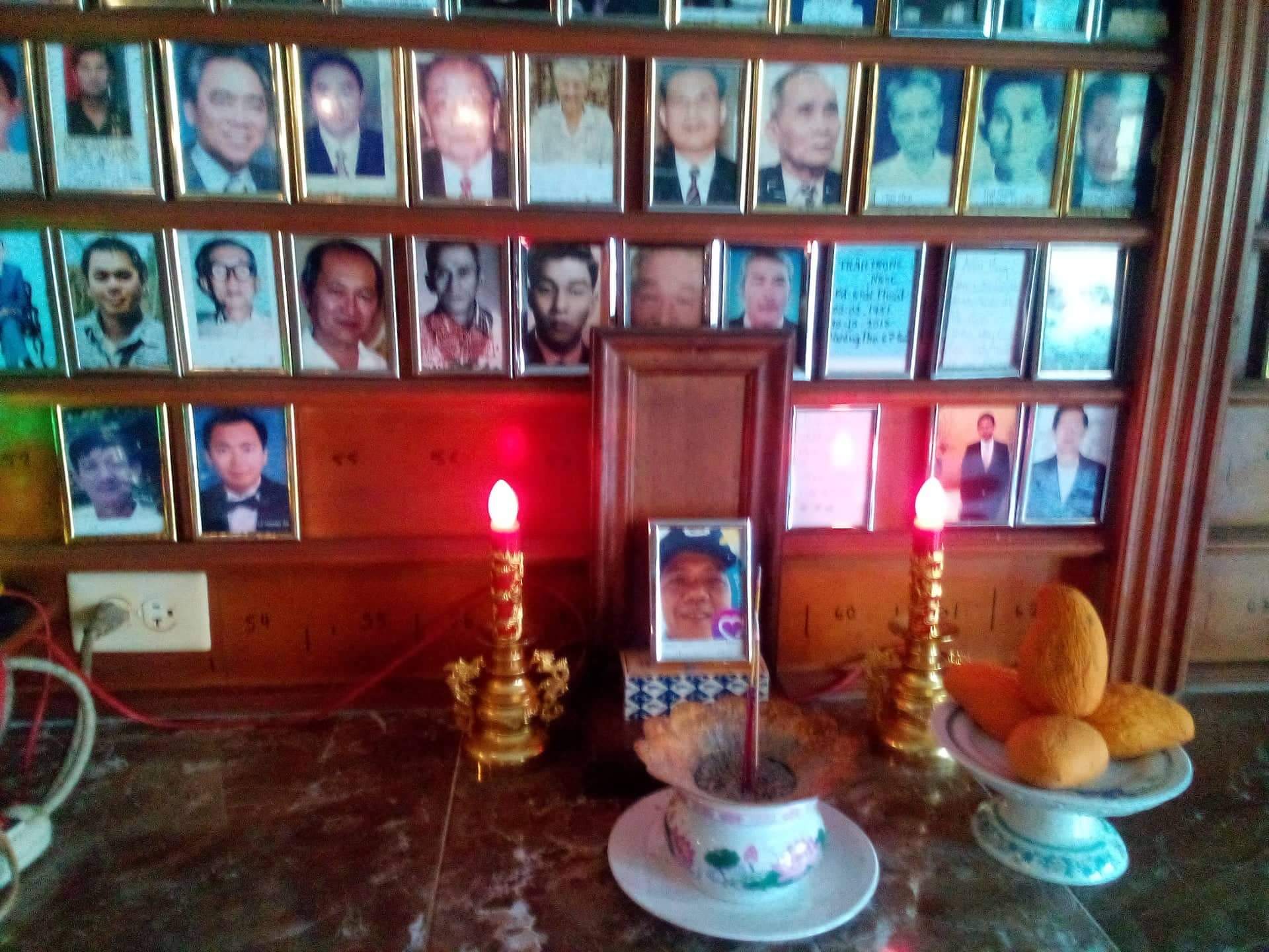 Đằng sau chánh điện là ngôi thờ tự vong linh những người đã khuất. Hai bên vách tường dán nhiều hình ảnh người quá cố, một bên dành cho nữ giới và phía bên đối diện là của nam giới. Cố công dò tìm, cuối cùng tôi cũng thấy được tấm ảnh của bạn mình ở hàng sau cùng. Gương mặt khôi ngô và nét cười hiền lành như những ngày còn đi học đã gợi lại trong tôi những tháng ngày hoa niên nơi sân trường, lớp cũ.