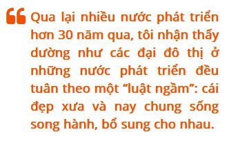 Qua lại nhiều nước phát triển hơn 30 năm qua, tôi nhận thấy dường như các đại đô thị ở những nước phát triển đều tuân theo một “luật ngầm”: cái đẹp xưa và nay chung sống song hành, bổ sung cho nhau. Đơn cử, ở Melbourne, cái “luật ngầm” dễ thương ấy thể hiện ngay trong từng tòa nhà hay góc phố. Chẳng hạn, chính tòa nhà ga Flinder không đơn thuần là nhà ga mà còn có không gian triển lãm nghệ thuật đương đại trên nền vật dụng xưa cũ, ngay tại tầng hầm. Gallery lạ lùng ấy có một shop bán hàng nghệ thuật cổ và kim kèm theo một góc trưng bày toàn là… nhựt trình và tạp chí của thế kỷ trước.
