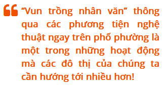Không thể chỉ trong ngày một ngày hai, xã hội hay đô thị có thể thoát khỏi mớ bòng bong của nhiều điều sai trái hay thấp hèn. Càng không thể chỉ truyền đạt lý thuyết, hay giáo dục từ chương về đạo đức và kiến thức chân-thiện-mỹ mới xua đi được những nỗi ám ảnh, đau khổ thường xuyên. “Vun trồng nhân văn” thông qua các phương tiện nghệ thuật ngay trên phố phường là một trong những hoạt động mà các đô thị của chúng ta cần hướng tới nhiều hơn!