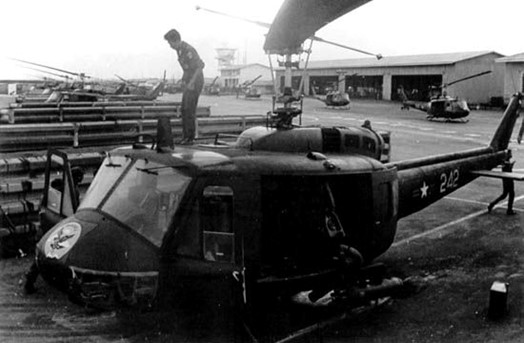 Khoảng giữa năm 1972, khi trận chiến An Lộc trở nên khốc liệt, và trực thăng bị đe doạ vì một loại vũ khí mới của bộ đội BV là hoả tiễn tầm nhiệt SA-7, một số đã bị trúng loại hoả tiễn này, nhưng số trực thăng thật sự bị tiêu huỷ không nhiều như một số tài liệu đã phóng đại, kể cả bị bắn bởi những loại súng phòng không khác. Cũng có những trường hợp bị bắn hư hỏng, nhưng tuỳ theo mức độ: nếu nhẹ thì sửa tại chỗ để tiếp tục các phi vụ, hai là tạm bay về đơn vị để sửa, trường hợp hư hại nặng không thể bay được thì mới xin trực thăng CH-47 câu về đơn vị. Một đôi ba lần vì lý do nào đó, không thể câu về được, thì sẽ có một toán chuyên viên của các ban xưởng đến nơi gỡ lấy những vật liệu còn sử dụng được, còn xác máy bay thì dân địa phương “làm thịt”, chỉ để lấy những ống nhôm hay những miếng kim loại, mớ dây điện v.v..