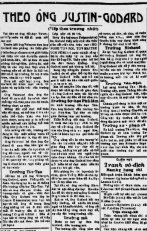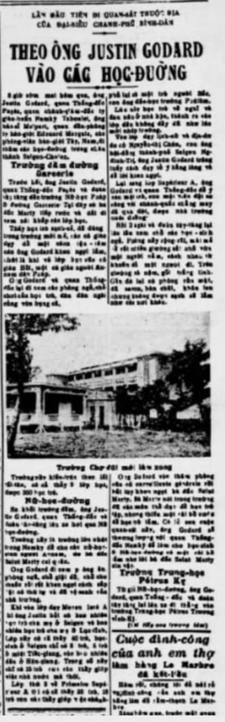 Lời giới thiệu: Ông Godard là người đại biểu của Chánh phủ Pháp (Mặt trận Bình dân) được cử sang Đông dương tháng Giêng năm 1937 để thăm hỏi sự tình. Ông có đi thăm nhiều nơi như các bệnh viện, cơ quan từ thiện và trường học. Ngày 8 tháng Giêng năm 1937, ông Godard và Thống đốc Pagès đã đến thăm vài trường như Nữ Học Đường, Petrus Ký, v.v… Xin được ghi lại buổi viếng thăm này vì có một vài chi tiết giúp ta hình dung lại sự sinh hoạt của trường Petrus Ký lúc bấy giờ :