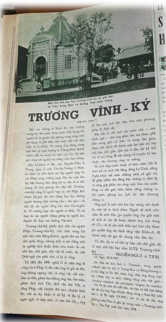 Trương Vĩnh Ký nhà bác học làm vẽ vang đất nước Nguiễn-Ngu-Í và T. F.H. – Sưu tập: Võ Phi Hùng (Nguồn: Sáng Dội Miền Nam số 25, tháng 7-1961) Share this: Share on X (Opens in new window) X Share on Facebook (Opens in new window) Facebook Like Loading...