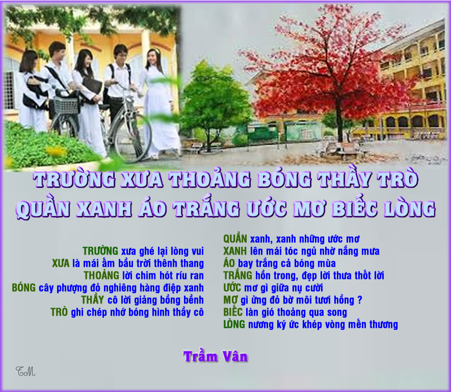 Trường Xưa Thoảng Bóng Thầy Trò Quần Xanh Áo Trắng Ước Mơ Biếc Lòng Trầm Vân Share this: Share on X (Opens in new window) X Share on Facebook (Opens in new window) Facebook Like Loading...