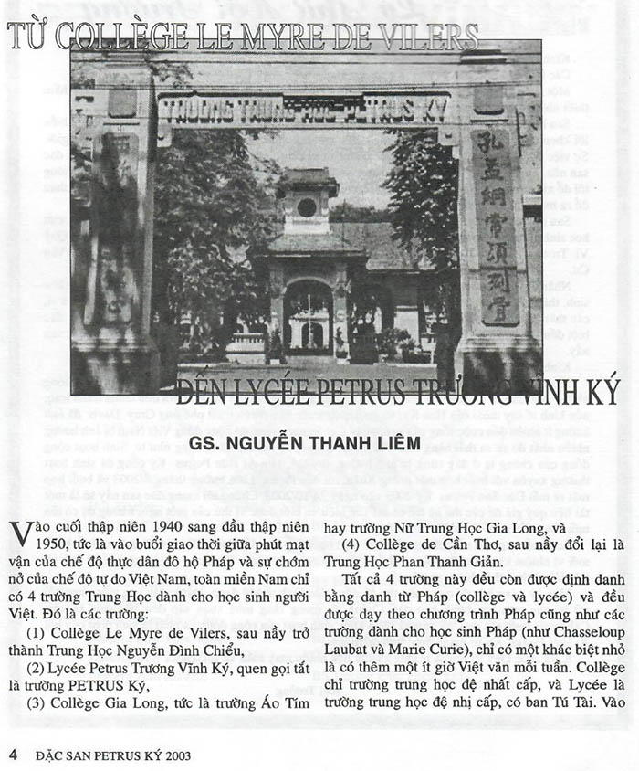 Từ Collège Le Myre De Vilers đến Lycee Petrus Trương Vĩnh Ký GS Nguyễn Thanh Liêm (Nguồn: ĐS Petrus Ky 2003, Hội AH CHS Petrus Ký Bắc California) Share this: Click to share on X (Opens in new window) X Click to share on Facebook (Opens in new window) Facebook Like Loading...