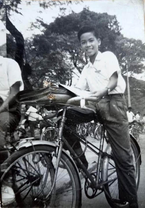 Hình 8. Hình ảnh thân thương của học trò Lý Hồng Giang đạp xe đến trường, với cái cặp da để trên tay lái xe.